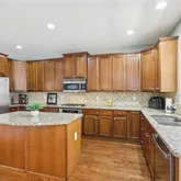 - Kitchen Features: Breakfast Bar, Cabinets Stain, Solid Surface Counters, Stone Counters, Eat-in Kitchen, Kitchen Island, View to Family Room