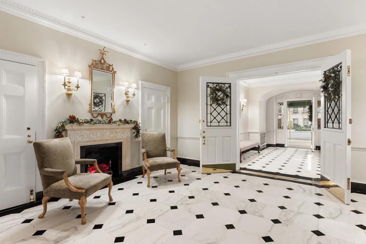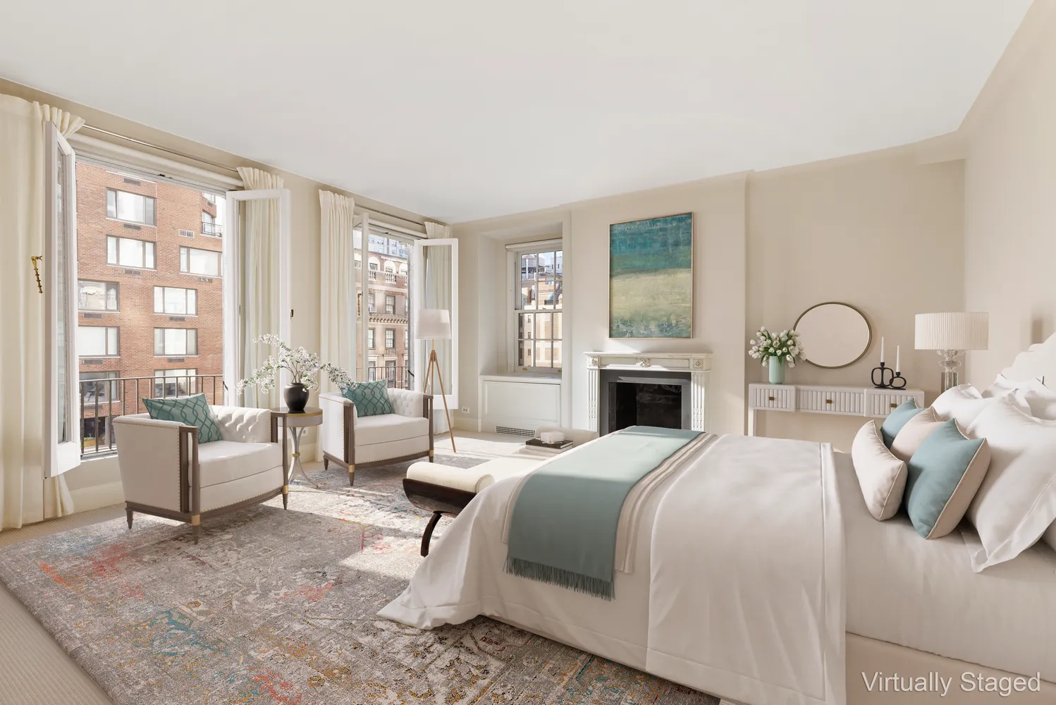 A private elevator landing opens into the gallery from which the impressive and spacious suite of public rooms radiate. Perfectly placed are the 5 remarkably large and bright bedrooms. The primary bedroom is divine, with a wood-burning fireplace, floor to ceiling windows, marble bath, and ample closets.