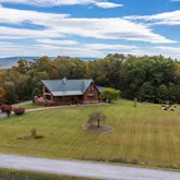 In 40 years of real estate, this is truly one of the most intriguing and extraordinary homes to come to market—offering what are widely considered the best mountain views in the region. This impressive 5-bedroom, 5-bath custom log home spans nearly 6,000 square feet of finely crafted living space, blending rustic elegance with modern comfort. Every detail showcases craftsmanship and warmth, from the custom wood floors to the soaring beamed ceilings that frame a magnificent multistory stone fireplace. Step outside and take in panoramic vistas from two expansive porches, a spacious side deck with motorized awnings, or the sunroom that seamlessly connects to the home’s outdoor living spaces. The 10-acre property offers the perfect mix of open yard and wooded privacy, along with a detached, fully finished workshop featuring heat, air conditioning, and its own bathroom—ideal for hobbies, projects, or guest overflow. Entertainment and relaxation abound, with a large home theater complete with rows of plush reclining seats that convey, and a custom stone firepit perfect for evening gatherings under the stars. Practical amenities include a $12,000 Polaris UTV with very few hours, along with attachments including a snowplow and a $15,000 X Mark zero turn lawnmower with many many attachments, both conveying with the sale to make caring for your mountain paradise effortless. The lower-level suite offers full independence with a kitchenette and bath—ideal for multi-generational living or guest accommodations. This remarkable property captures the essence of mountain living at its finest—privacy, beauty, comfort, and unforgettable views—all in one extraordinary package.
