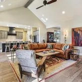 - Interior: One Living Area, Separate Dining Room, Two Eating Areas, Island Kitchen, Walk-In Pantry, Study/Library, 1st Floor Lvl/No Steps, High Ceilings, Open Floor Plan, Pull Down Storage, Cable TV Available, High Speed Internet, All Bedrooms Downstairs, Laundry Room, Walk in Closets