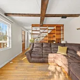 - Room Living Room Features: Beamed Ceilings,Flooring - Wood,Deck - Exterior,Slider