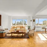 Walls of glass frame panoramic skyline and East River views in this luminous corner four bedroom co-op. With ~ 2,239 square feet, this coveted “F” line has an extra room purchased from the neighboring apartment, and East River views from every room. The extra room is now used as a library and could easily be used as a fourth bedroom with en suite bath (there had previously been an adjacent full bathroom). The current configuration of three bedrooms, library...Views, Space, Flexibility, and Dazzling Light