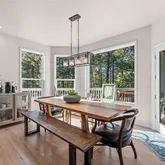 - Room Description: Formal dining space, Bay window, natural wood flooring