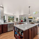 - Room Description: Quartz Countertops, large island, 6 burner gas stove, double convection ovens, refrigerator, natural wood flooring