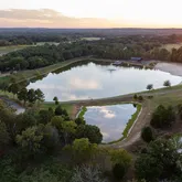 Anchoring the property is a 10-acre reservoir-style lake bordered by stone walls, a white sand beach, boat ramp, and fountain. Four additional ponds offer excellent recreational appeal, complemented by mature hardwood timber, manicured understory, and winding drives that lead to the home and venue areas. Main Residence