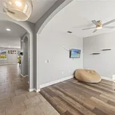 - Interior Features: Ceiling Fan(s), High Ceilings, Kitchen/Family Room Combo, Open Floorplan, Primary Bedroom Main Floor, Smart Home, Solid Surface Counters, Thermostat, Walk-In Closet(s), Window Treatments