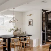 The entertainer's kitchen features custom white oak cabinetry, a 9-ft Calcutta Fiorito marble island, lime-washed hood, 36” Duura Elite range, and unlacquered brass fixtures throughout....| OPEN HOUSE SAT 1-3 & SUN 12-2 pm | Nestled behind a private fence on a tree-lined Rosedale street, this single-story home with 2-Car Garage blends modern elegance with old-world charm. Re-imagined by interior designer Angelica Centeno of Atelier AC Design studio, this home is filled to the brim with refined design moments.