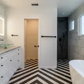 - Room Bathroom Features: Vanity area, Linen Closet/Storage, Remodeled, Shower in Tub