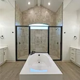- Interior Features: BeamedCeilings, BuiltInFeatures, TrayCeilings, CeilingFans, CrownMolding, DoubleVanity, EntranceFoyer, GardenTubRomanTub, HisAndHersClosets, MultipleClosets, OpenFloorplan, PullDownAtticStairs, RecessedLighting, SplitBedrooms, SeparateShower, TubShower, Vanity, WalkInClosets, CustomCabinets, GraniteCounters, KitchenIsland