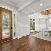- Interior Features: Built-in Features, Cathedral Ceiling(s), Ceiling Fan(s), Coffered Ceiling(s), Crown Molding, Eating Space In Kitchen, High Ceilings, Kitchen/Family Room Combo, Open Floorplan, Primary Bedroom Main Floor, Solid Surface Counters, Solid Wood Cabinets, Split Bedroom, Stone Counters, Thermostat, Vaulted Ceiling(s), Walk-In Closet(s)