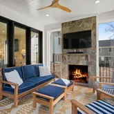 Designed for everyday living and memorable gatherings alike, the home opens beautifully to the outdoors. A screened porch with fireplace and television overlooks a large, private backyard with ample green space, perfect for play, entertaining, or simply enjoying a quiet evening at home.