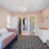 Inside, the home blends thoughtful design with elevated finishes throughout. Owners used the build process to upgrade everything! Hardware from Modern Matter and Rejuvenation pairs with lighting and décor selections from Visual Comfort, Serena & Lily, Schumacher, and McGee & Co., creating a timeless, layered aesthetic that feels both sophisticated and welcoming. The spacious layout offers five bedrooms and five-and-a-half baths, including a private nanny or in-law suite that provides flexible living for guests or multigenerational households.