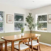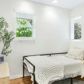 Inside, three versatile bedrooms offer flexibility for family, guests, or work-from-home needs. The refreshed interiors feature a warm, earthy palette and curated custom touches, including a French-abstract TV stand, a solid oak wood dining table, and all lightly used kitchenware. The layout even allows for future expansion, with space in the entryway to create a garage or additional sleeping area. In the backyard, a separate storage/tool room is ready to transform into a studio, art space, or keep as is.