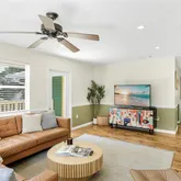 Meticulously designed by a New Jersey–based interior designer, this 2-bedroom plus den (or 3rd bedroom), 3-bath beauty showcases a calming, earthy interior aesthetic, perfectly contrasted by its bold green-and-yellow...Welcome to The Palmshade Bungalow — your slice of paradise in the heart of Sarasota, just minutes from world-famous Siesta Key Beach. This elevated, fully furnished turnkey home blends style, comfort, privacy, and convenience in a quiet, friendly neighborhood right next to Bee Ridge Park.