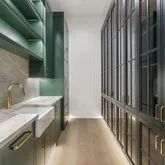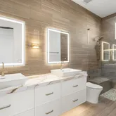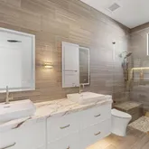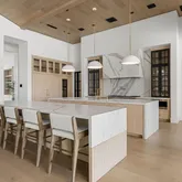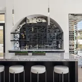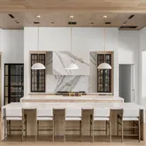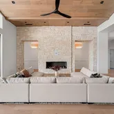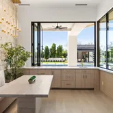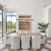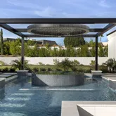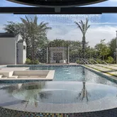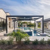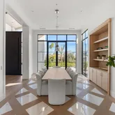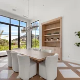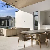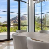 Outdoors, the estate unfolds as a resort: with an oversized pool with Baja shelves and multiple lounging terraces; a circular spa accented by custom water features; and a dramatic sunken fire pit that draws evenings out under desert skies. Entertaining moves naturally to the outdoor kitchen and dining pavilion, all oriented to the grandeur of Camelback Mountain.
