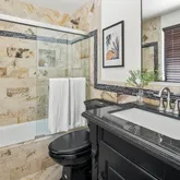 - Room Bathroom Features: Remodeled, Shower in Tub, Shower, Tile Counters, Vanity area