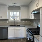 - Kitchen Features: Cabinets White, Stone Counters, View to Family Room