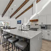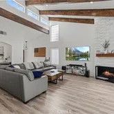 - Interior Features: Beamed Ceilings, Built-in Features, Cathedral Ceiling(s), Living Room Deck Attached, Quartz Counters, Recessed Lighting