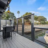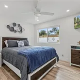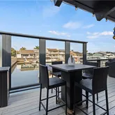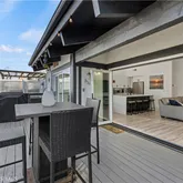The interior is flooded with natural light courtesy of soaring beamed ceilings and strategically placed skylights. The open-concept living space features designer flooring and unique indoor-outdoor integration using modern bi-fold doors that open to an expansive waterfront deck and private dock. At the heart of this home sits a gourmet chef’s dream kitchen equipped with high-end appliances, a sleek waterfall countertop, and an oversized center island with breakfast bar seating—perfect for entertaining while taking in the unforgettable views. The residence offers two spacious bedrooms and two full bathrooms. The primary suite serves as a private sanctuary, boasting a spa-inspired bathroom with a floating double vanity and a frameless glass walk-in shower featuring dual shower heads. Other Premium Amenities Finished Garage: Complete with professional epoxy flooring. Outdoor Space: Rare front and side yards on a spacious corner lot. Turn-key Quality: Every inch of this home has been updated with the finest architectural finishes and meticulous care. Indulge in the ultimate beach lifestyle on one of the most desirable streets in the neighborhood. This is coastal living at its finest!