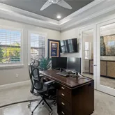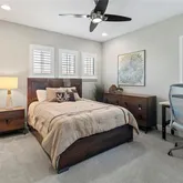 - Interior Features: Built-in Features, Ceiling Fan(s), Eating Space In Kitchen, High Ceilings, In Wall Pest System, Kitchen/Family Room Combo, Open Floorplan, PrimaryBedroom Upstairs, Solid Surface Counters, Solid Wood Cabinets, Split Bedroom, Stone Counters, Thermostat, Walk-In Closet(s), Window Treatments