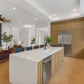 Inside: 11-FT CEILINGS, WIDE-PLANK WHITE OAK FLOORS THROUGHOUT, and a dramatic two-story foyer. The CHEF’S KITCHEN features CUSTOM BENEDETTINI CABINETRY, MONOGRAM APPLIANCES, and a HIDDEN WALK-THROUGH PANTRY.