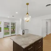 - Kitchen: Center Island, Granite/Stone Counter, Sliding Door, Eat-In