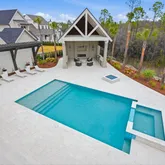 - Exterior: Balcony, BBQ PitGrill, Cabana, Deck Open, Fenced Back Yard, Fenced Privacy, Fireplace2, Hot Tub, Patio Covered, Patio Open, PavillionGazebo, Pool - Heated, Pool - House, Shower, Sprinkler System, Summer Kitchen