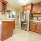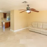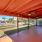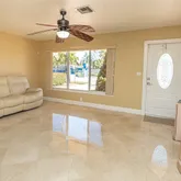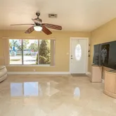 . This home seamlessly extends from its majestic 39'x11.5', oversized, screened-in, under roof patio, to 75' of waterfront views. From here you will experience Miami's gorgeous sunsets engulfing the western skies. Bright living area features: Italian marble flooring throughout living room, dining room and kitchen as well as both hallway bathrooms. An abundance of natural light enhances the clean classic look. Both bathrooms also boast, floor to ceiling Italian marble in the shower and tub area. Both marble bathrooms are further enhanced by polished brass Pfister bathroom fixtures. The remodeled kitchen exudes classic elegance with its matching LG stainless steel refrigerator, electric range, and microwave oven. Soft touch cupboard doors and cabinet drawers along with double lazy Susan's and the built-in 11 bottle wine rack complete the kitchen's elegant look.
