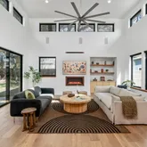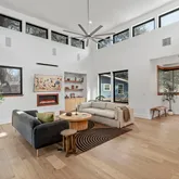 - Interior Features: Breakfast Bar, Bookcases, Bidet, Built-in Features, Ceiling Fan(s), High Ceilings, Kitchen Island, Main Level Master, Open Floorplan, Pantry, Quartz Counters, Stone Counters, Recessed Lighting, Vaulted Ceilings, Natural Woodwork