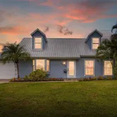 Situated on an elevated tropical lot, this home provides added peace of mind with a fully restored 100-ft seawall and retaining wall, plus the comfort of hurricane-rated windows and doors and a durable 2019 metal roof. Inside, the open layout features a newly renovated kitchen, updated bathrooms, fresh interior paint, and abundant natural light. The primary suite is located on the first floor, with two additional bedrooms upstairs for privacy and flexibility.