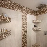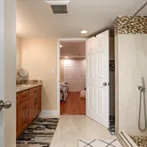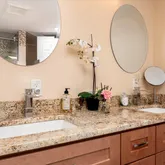 Fully remodeled bathroom with double sink and double shower