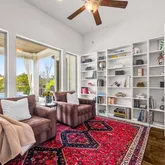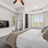 - Room Description: Spacious primary suite located on the main level, featuring access to the outdoor living area and pool, abundant natural light, and plantation shutters.