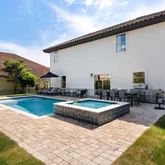 - Exterior: Fenced Back Yard, Hot Tub, Patio Open, Pool - Gunite Concrt, Pool - Heated, Rain Gutter, Sprinkler System