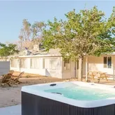 Situated on a large lot in a peaceful neighborhood, the backyard offers sweeping mountain views and endless possibilities for outdoor enjoyment including a spa and firepit. Located just 2.8 miles from downtown Joshua Tree and a short 13-minute drive to the entrance of Joshua Tree National Park, this home is perfectly positioned to enjoy the best of the area. Currently an active Airbnb, it has been lovingly used as both a rental and a personal retreat by the seller.
