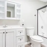 - Room Bathroom Features: Bathtub, Shower, Shower in Tub, Double Sinks in Primary Bath, Exhaust fan(s), Formica Counters, Separate tub and shower, Soaking Tub, Tile Counters, Vanity area