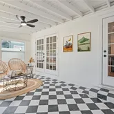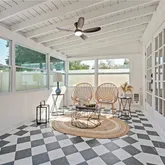 A charming sunroom with elegant checker flooring offers the perfect space to enjoy your morning coffee or unwind with an afternoon glass of wine.