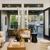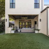 Refined details abound, from the rich hardwood floors and designer finishes to the abundant natural light that fills the home. A first-floor guest suite and a well-appointed wet bar create an inviting setting for gatherings, while the expansive covered patio—with built-in grill, prep sink, and a turfed backyard—extends the living space outdoors.