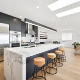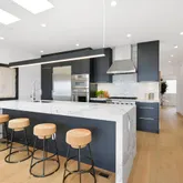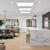 - Kitchen Features: Breakfast Area, Island, Island w/Sink, Kitchen/Family Combo, Marble Counter, Pantry Cabinet, Quartz Counter, Skylight(s)