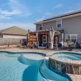 - Exterior: Fenced Back Yard, Fenced Privacy, Patio Open, PavillionGazebo, Pool - Gunite Concrt, Pool - In-Ground, Yard Building