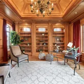 - Room Description: Custom Cherrywood with floor-to-ceiling bookshelves, and a stately fireplace