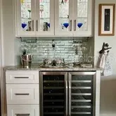 rack, trash/recycle pull out. Custom Wine bar with 56 bottle wine refrigerator, matching