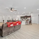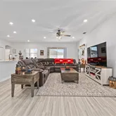 Gourmet Living: Open kitchen with granite counters, Samsung stainless steel appliances, and a large breakfast bar....Better Than New: Modern Luxury in Summercrest! Skip the builder’s wait and move straight into this meticulously upgraded 2024 Highland Homes Willow II. Boasting 2,536 sq. ft. of open-concept living on a quiet 0.26-acre lot, this 5-bedroom, 3-bathroom split bedroom floor plan estate offers space and style that simply can't be replicated at this price point. Signature Upgrades & Features: