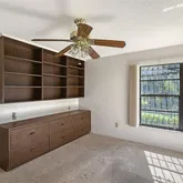 - Interior Features: Attic Fan, Built-in Features, High Ceilings, Primary Bedroom Main Floor, Solid Surface Counters, Split Bedroom, Vaulted Ceiling(s), Walk-In Closet(s), Window Treatments