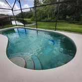 - Pool Features: Deck, Gunite, Heated, In Ground, Screen Enclosure