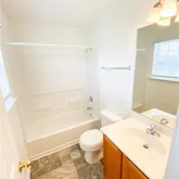 Two-story townhome featuring two bedrooms and two and a half bathrooms. The first floor includes a living/dining room combination, ceiling fan in the living area, a galley kitchen with pantry, and white appliances including a stove, refrigerator with ice maker, dishwasher, and disposal. A half bath is also located on the main level. Both bedrooms are upstairs and each includes an attached full bathroom...47 Bearing Circle – Savannah, GA 31419