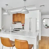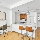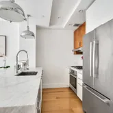 The chef’s kitchen is appointed with polished, white Carerra marble countertops, custom walnut and...Welcome to Waterbridge 47 – a recently developed boutique condo at the border of charming Vinegar Hill and chic Dumbo.
