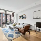 Situated on the 4th floor, this delightful one-bedroom residence offers exceptional light and pristine finishes. The entry foyer leads to a beautiful open chef’s kitchen, a spacious living room with expansive floor-to-ceiling windows and a private terrace offering views of Manhattan.