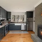 There's ample space for a pool with mountain views, plus expansive grassy meadows for enjoyment without excessive maintenance. Additional improvements include solar panels, underground electric, a standby generator, a blacktop driveway, and several new ductless mini-split units. The home's open floor plan is ideal for entertaining, while the wood-burning fireplace in the living room and high-efficiency wood stove insert in the kitchen ensure cozy winters.