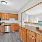 - Kitchen Features: Breakfast Room, Cabinets Stain, Laminate Counters, View to Family Room