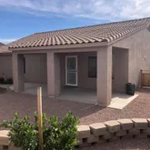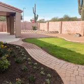 Backyard features beautiful desert landscaping with just the right amount of grass (there is plumbing/electrical in he backyard for a fountain/water feature)